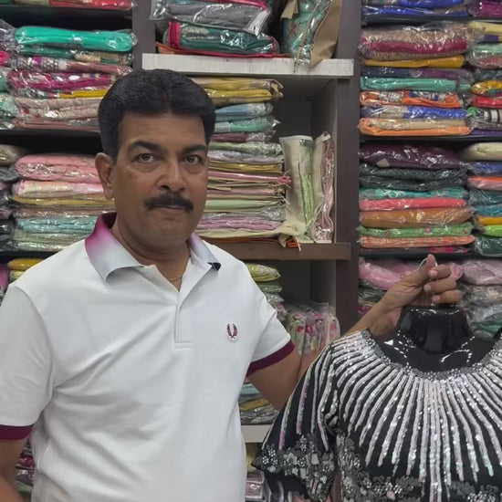 Black Crepe Satin Silk Ready to Wear Saree with Stitched Blouse