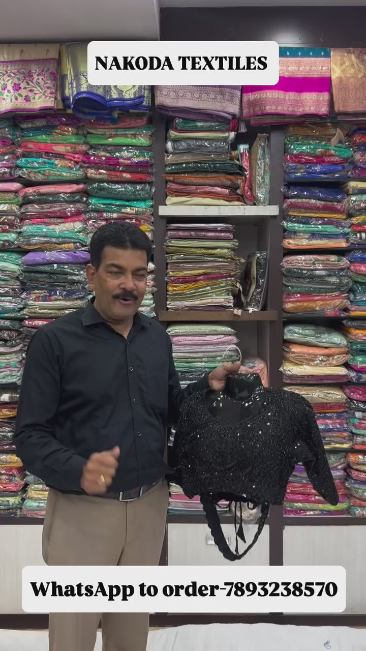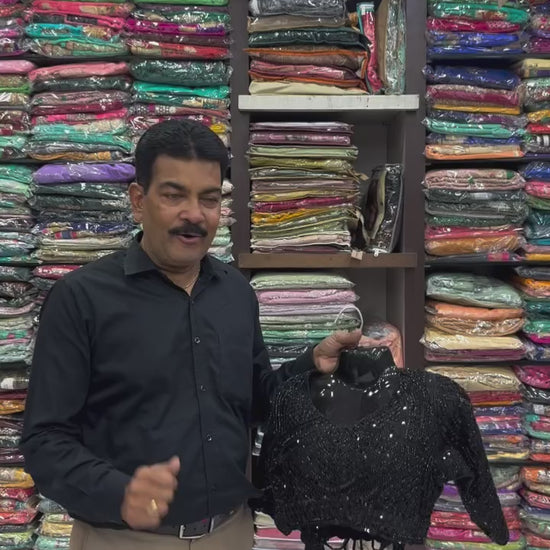Black Hand Work Satin Silk Ready to Wear Saree