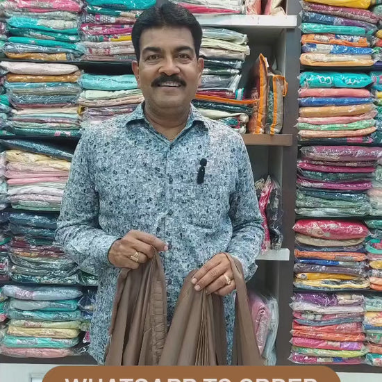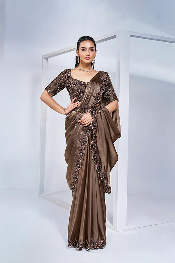 Brown Hand Work Satin Silk Ready to Wear Saree