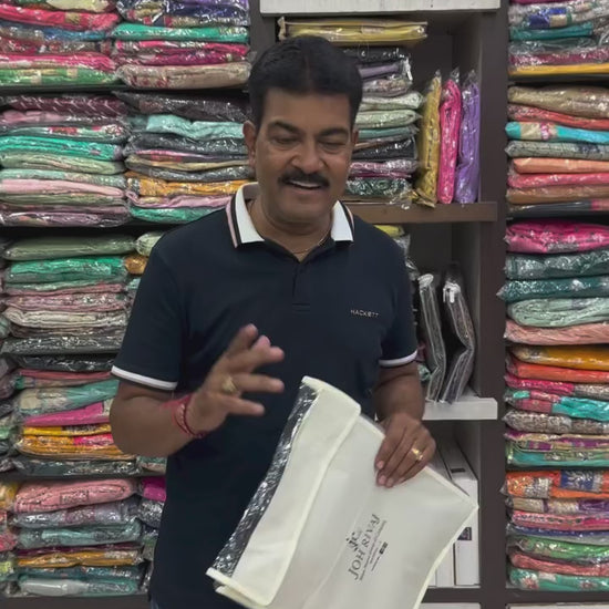 ✔️ Work: Fine Silver Zari Motif Work Across Saree and Blouse