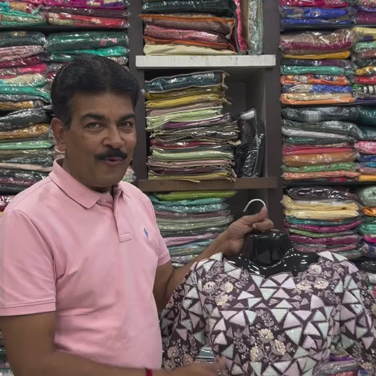 Lavender Hand Work Satin Silk Ready to Wear Saree