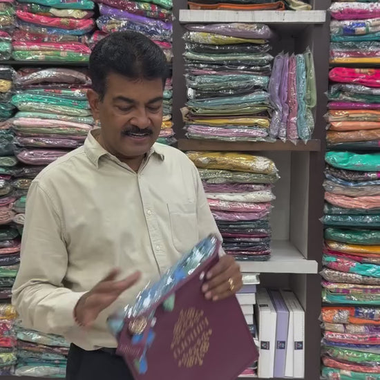 ✔️ Blouse Fabric: Embroidered Blue Silk
