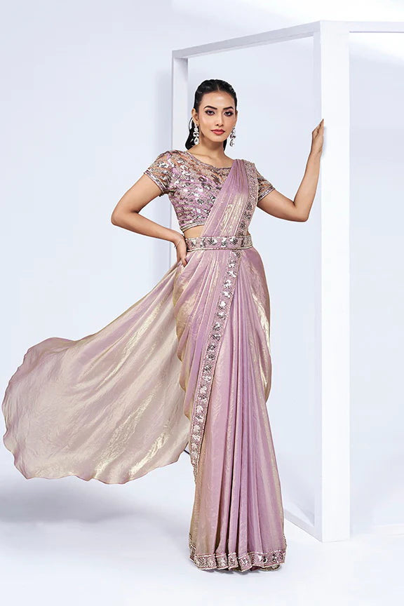 Pink Hand Work Satin Silk Ready to Wear Saree