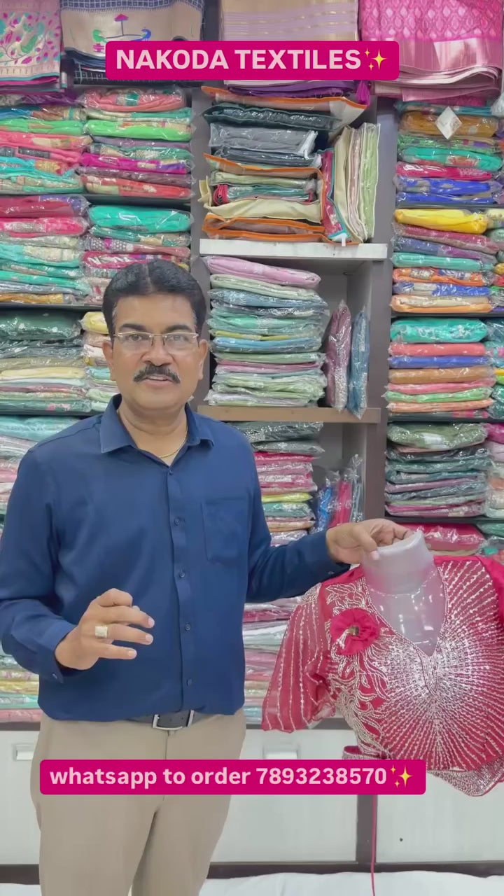 Pink Hand Work Satin Silk Ready to Wear Saree