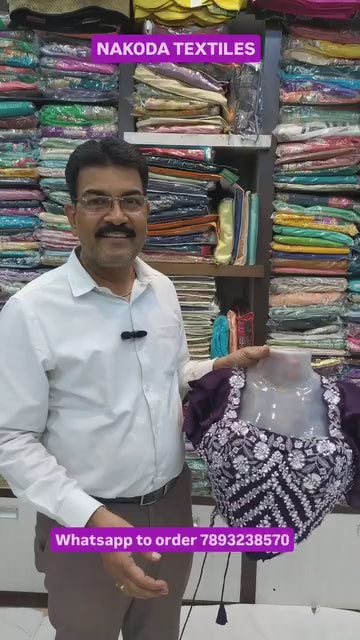 Purple Mirror Work Satin Silk Ready to Wear Saree