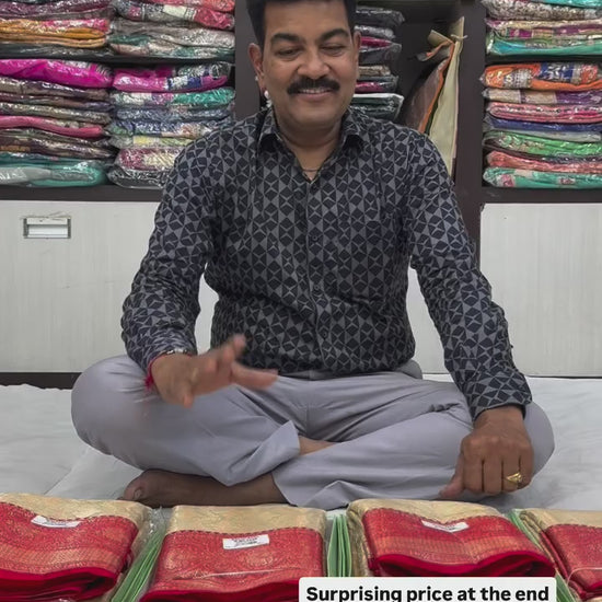 Elevate your festive wardrobe with our elegant Semi Dharmavaram Pattu Saree, crafted in a stunning cream and red combination. Perfect for Dussehra celebrations and other special occasions, this saree is designed to provide traditional elegance with a touch of modern convenience.