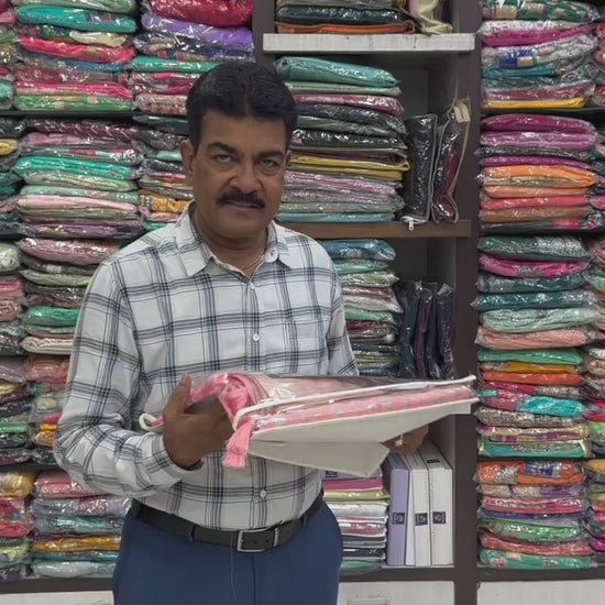 ✔️ Color: Pastel Pink Saree with Green Blouse Combination