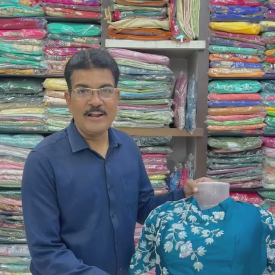 Turquoise Blue Crape Satin Silk Embroidered Ready to Wear Saree with Stitched Blouse