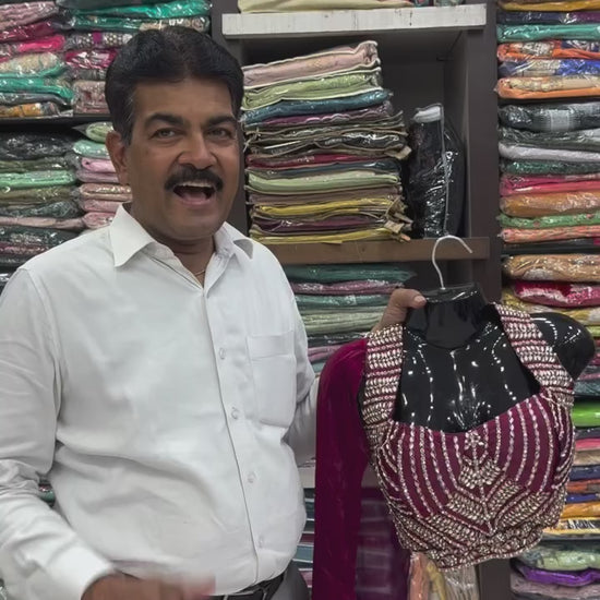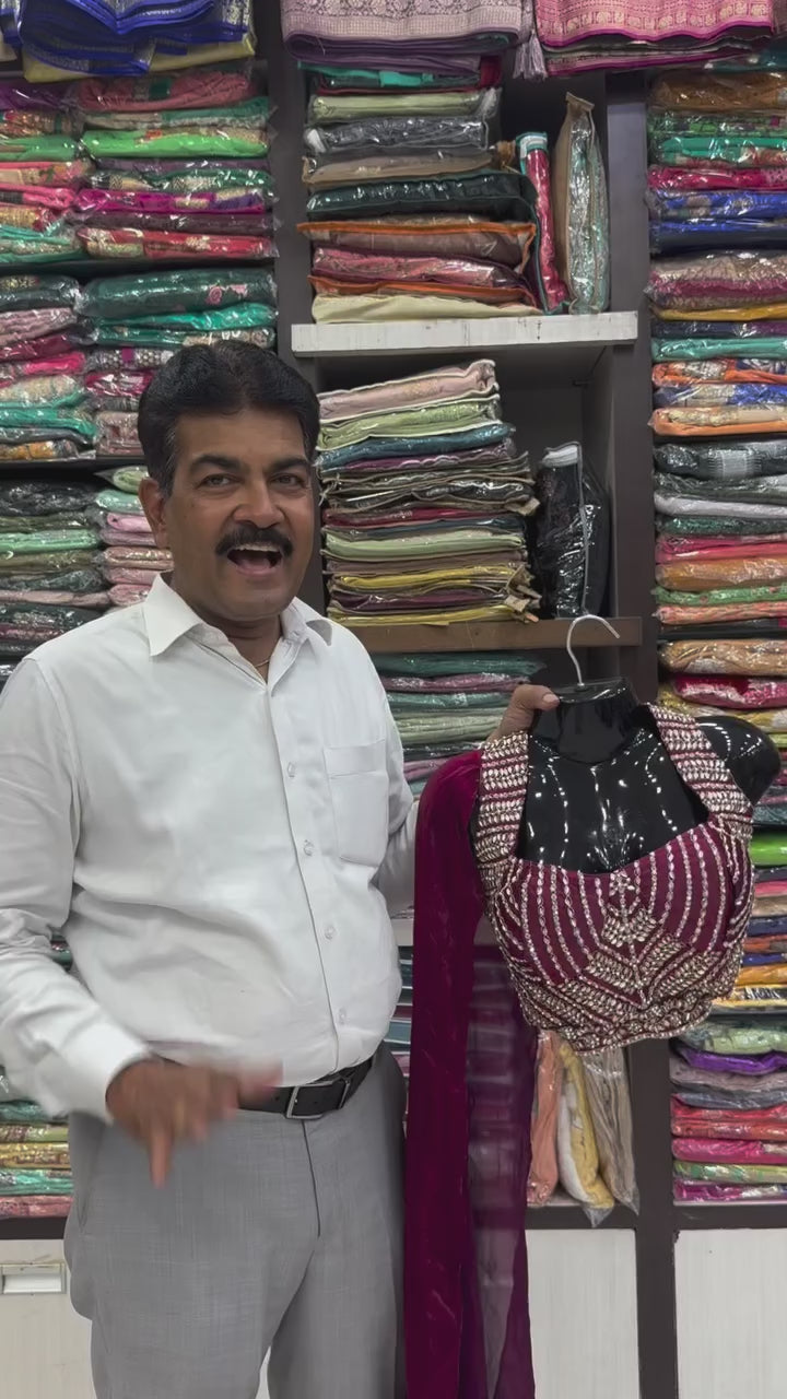 Wine Pearl Handwork Two Tone Satin Silk Ready to Wear Saree